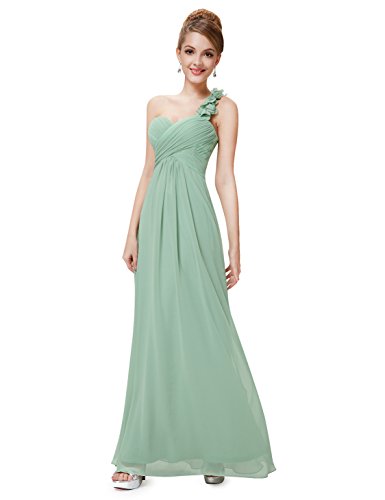 This stunning one shoulder gown features a flattering ruched sweetheart neckline with a draping lower design in the lower half of the silhouette. The non-removable flower detailing on the single shoulder strap gives the dress a sweet touch and the shoulder strap is non-adjustable. If you are looking for an elegant, gorgeous bridesmaids dress, this is the perfect choice as it is one of our most popular bridesmaids stylesFeature