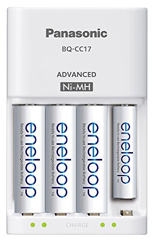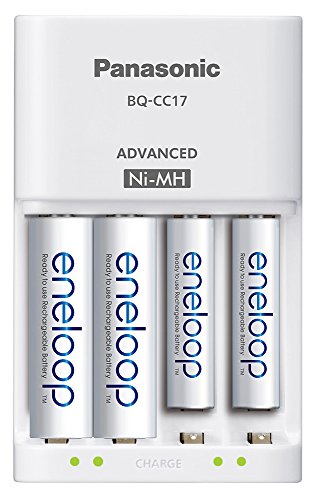 Panasonic BQ-CC17SBA eneloop Advanced Individual Battery Charger with 4 LED Charge Indicator Lights, White