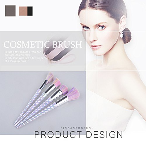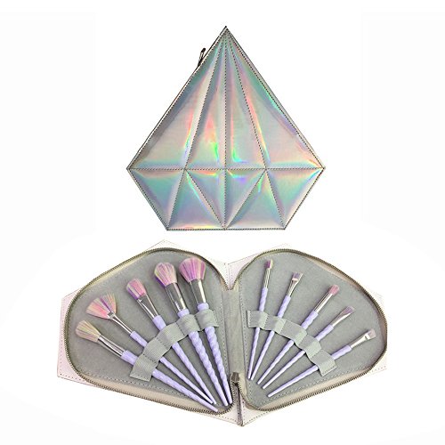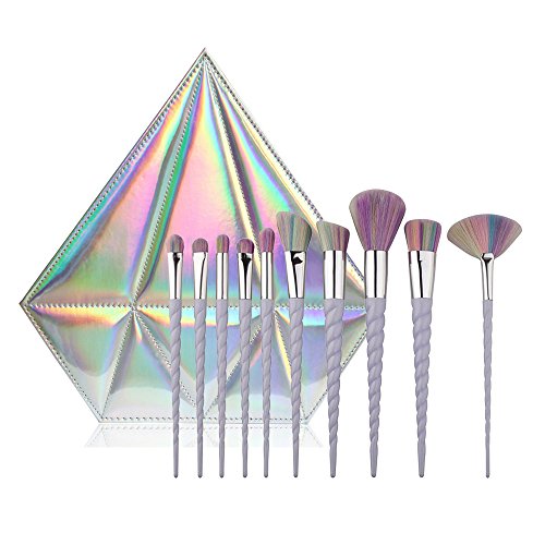 Product Description CDC® 10pcs Spiral Unicorn Handle Shape Rainbow Synthetic Make-up Brush Set Professional Foundation Eyeshadow Blusher Brush Kit, with Diamond Bag 0