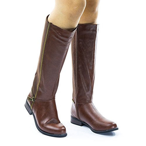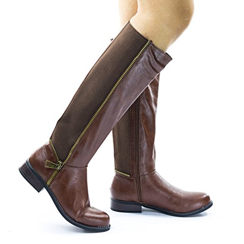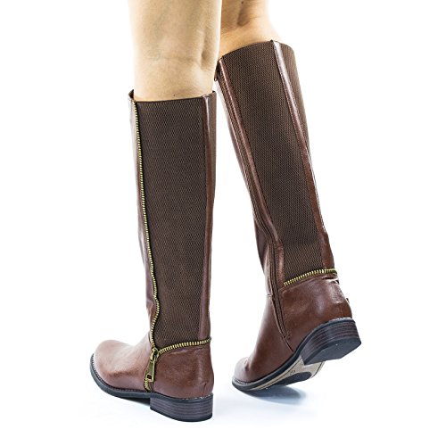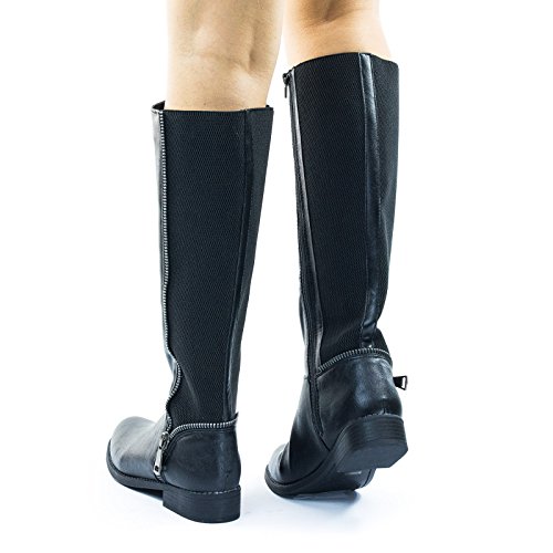 Binding : Apparel Product Description About This Shoes :These boots features euquestrian inspired riding boots featuring elastic back panel, contrasting zipper oranamentation, faux leather front panel, inner zipper closure, stacked block heel and faux furn inner lining on the front panel. The faux fur is only on the front side where the faux leather shaft is, the back is elastic inside and outside. Brand - Bamboo Colors Available: Black, Congac Occasion: Casual Shoe Type: Riding, Equestrian Shoe Style: Riding, Equestrian Inner Lining: synthetic Heel Height In Inches - 1 Heel Style - Block Toe Style - round-toe Platform Height In Inches - Shaft Height In Inches - 15.5 Circumference Opening - 15 Strap Type - strapless Sole - 0 All Man Made Material unless otherwise stated. Computer/Phone/Table monitors might show color differently because of its quality or calibration, we suggest you look at the photo in at least 3 monitors if you need exact color match of your shoes. 0