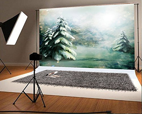 7x5ft Photography Christmas Backdrops Painting Pine Snow Fantasy for Children Photo Studio Natural Scenery Background
