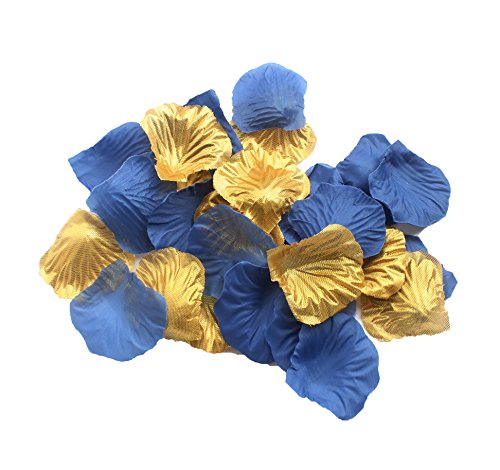 CheckMineOut Set of 600 Royal Blue & Gold Silk Rose Petals Artificial Flowers Wedding Centerpieces Decoration Confetti Party Favor