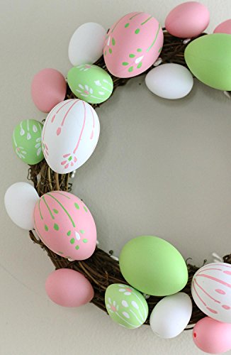 Northlight 10" Pastel Pink, Green and White Floral Stem Easter Egg Spring Grapevine Wreath