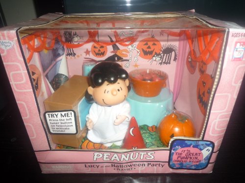 -. Binding : Toy -. Brand : Peanuts -. EAN : 0090733077677 -. Feature : Press knob on TV and phrases from the Peanuts gang can be heard. -. IsAdultProduct : 0 -. Label : Playing Mantis -. Manufacturer : Playing Mantis -. Model : 7767 -. MPN : Pea-4925 -. PackageQuantity : 1 -. PartNumber : Pea-4925 -. ProductGroup : Toy -. ProductTypeName : TOYS_AND_GAMES -. Publisher : Playing Mantis -. Studio : Playing Mantis -. Title : PEANUTS Lucy at the Halloween Party Playset -. UPC : 090733077677