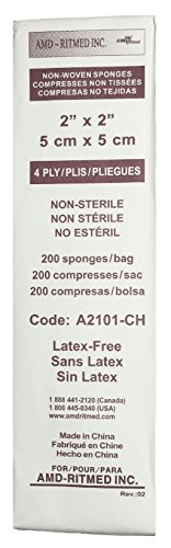 -. Feature : AMD Ritmed Gauze Sponges / Item Model Number: UHS-AMD-2101CH / 2 x 2 Inch, 4-Ply / Non-Sterile, Non-Woven / Item is sold by 1/Case of 5000 (25 Packs of 200)