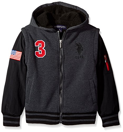 U.S. Polo Assn. Big Boys' Sherpa Lined Fleece Hoodie, Engine Red, 14/16