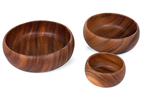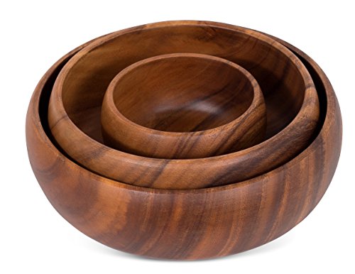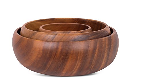 Give your Dinner Table a touch of natural elegance with the Birdrock Home Round Calabash Nesting Bowls. Handcarved, from a single piece of Acacia Hardwood, these bowls have no seams or joints, keeping the natural grain of the wood unbroken and seamless. It's the perfect gift for anybody who loves to cook, eat, or entertain.Feature