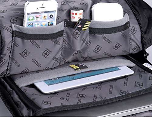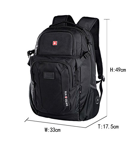 -. Feature : 15.6inch backpack nylon fabric with 1680D + POLY real synthesis, double thickening foam layer, swisswin printing anti-counterfeit polyester fabric, wear-resistant and waterproof. / Size: 49cm/H*33cm/T*17.5cm/W, Capacity:30 Litre, Weight:1.3KG, can put in 15.6 inch laptop / Design detailed: 30L capacity, configure multifunctional text layer + innovation barrier + large capacity main bag + independent computer layer + IPAD flannelette layer + receive bag / Elastic back pad, AIR FLOW stereo ventilation design;swisswin straps fine metal shield badge;two-way zipper zipper delay field service life;world class button NIFICO with guaranteed quality;swisswin side pockets plastic secuity badge. / Purpose: outdoor climbing. Business negotiations. Travel. Leisure. Students