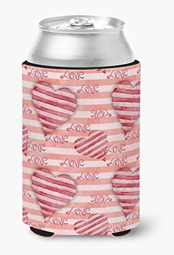 Caroline's Treasures BB7567CC Watercolor Red Striped Hearts Decorative, Can Hugger, Multicolor