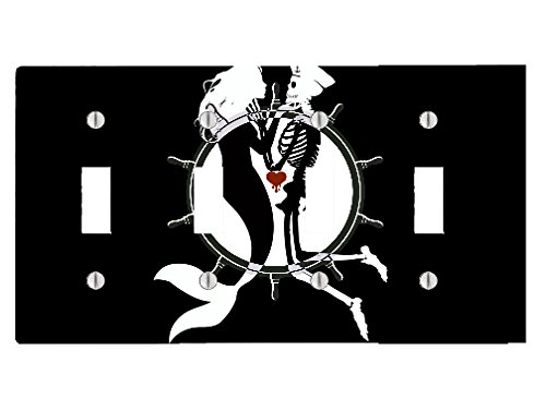 (Trendy Accessories)/Kids' Furniture Room Decor/Room Decor/DIRECT FROM USA/Funny Mermaid with Skeleton Sailor Silhouette Design 4 Toggle Electrical Switch Wall Plate (8.3...