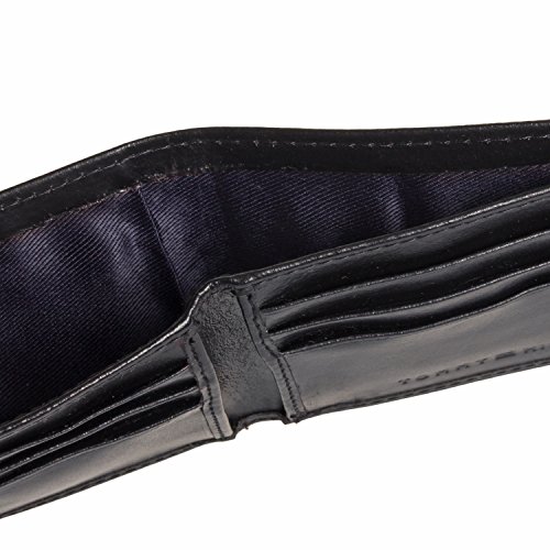 A sharp dressed man needs a sharply designed wallet. Carry your cash in style with this Leather Billfold Wallet w/ Metal Logo from Tommy Hilfiger. Constructed of gorgeously textured genuine leather, this bifold opens to reveal a spacious interior sure to keep you properly organized. 6 card slots, 2 slip pockets, and fully lined bill compartment give you plenty of options when storing your everyday necessities. The exterior features eye-catching metal detailing featuring the Hilfiger logo, so everyone knows who you carry. Presented in a gift box. Measures 4.25" x 3.5" x 1" (when closed).Feature