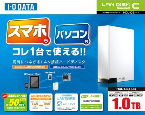 I-O DATA LAN & USB connection hard disk LAN DISK (iPhone 5 ・ Android terminal corresponding) 1TB HDL-CE1.0B