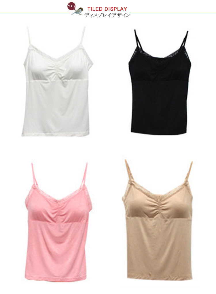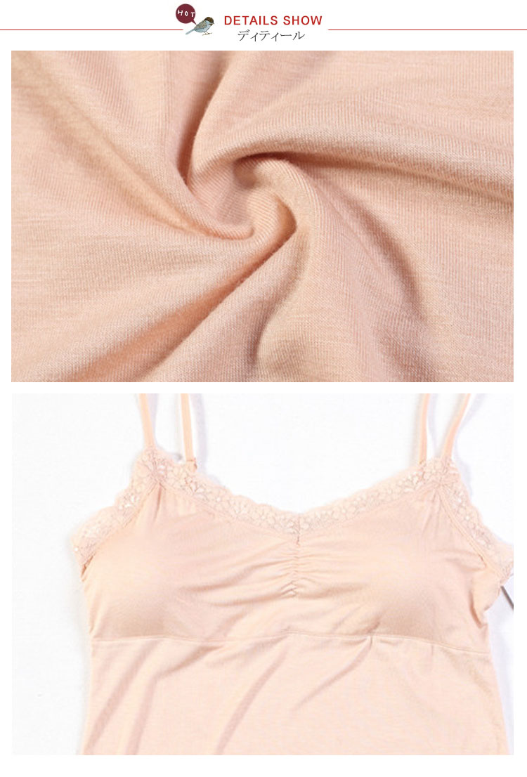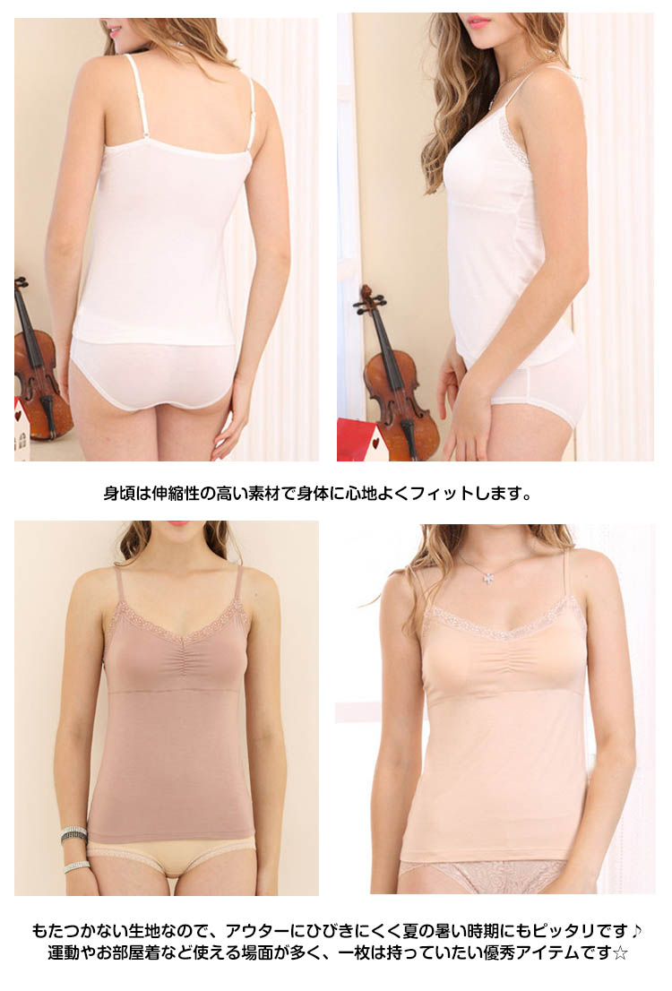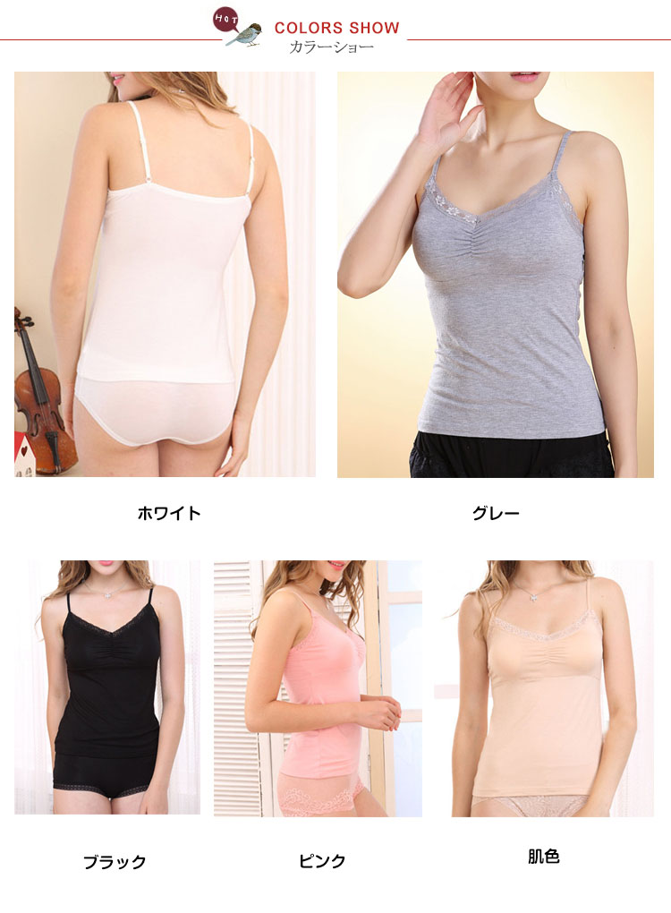 | 快適なカップ付きコットンキャミソール!カップ部分のパッドはふっくらとしたちょうどいい厚みがあり、きれいなお胸作りをサポートしてくれます♪生地感は薄手タイプで、さらっと肌触りのいい素材。身頃は伸縮性の高い素材で身体に心地よくフィットします。もたつかない生地なので、アウターにひびきにくく夏の暑い時期にもピッタリです♪運動やお部屋着など使える場面が多く、一枚は持っていたい優秀アイテムです☆ | |