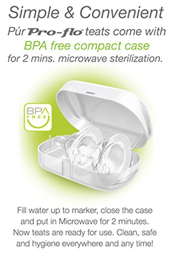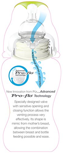 - Feature : Made from food grade plastics, BPA Free material / Easy to grip bottle shape. Pro-Flo nipple, new patented technology from Pur. / Specially designed valve with sensitive opening and closing function allows the venting process very effectively. / Its shape is mimic from mother's breast, allowing the combination between breast and bottle feeding possible and ease. / BPA Free compact case, only 2 minutes microwave sterilization. Clean safe, and hygiene everywhere and any time. One pack contains: 1 Bottle
