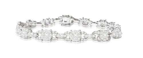 Composite setting with 9 diamonds around a center diamond gives a perceived diamond weight of 3 times the actual diamond weight.