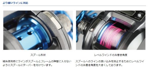 스풀에의 라인이 먹어 포함을 방지하기위해 레벨 와인 드의 실패 각도를 크게 하고 있습니다.