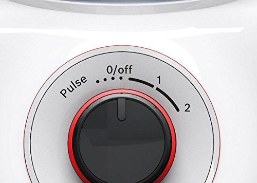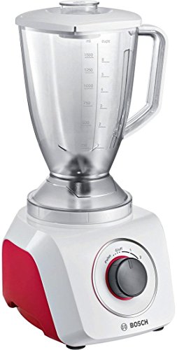 -. Feature : So leise arbeitet der SilentMixx dank des innovativen, effizienten Noise Reduction Systems / Komfortable und einfache Bedienung: Ein zentraler Drehknopf mit 2 Geschwindigkeitsstufen / Keine Sorgen um die Reinigung nach der Zubereitung: Kanne, Deckel und Messbecher sind Spülmaschinen geeignet / Dank BPA-freien Kunststoffteilen ist die Zubereitung garantiert sicher, gesund und komfortabel / 500 W Motor: Ausreichend Leistung zum Verkleinern von Eis, Früchten und Gemüse / Lieferumfang: Bosch MMB21P0R Standmixer, Universalzerkleinerer, Smoothie-Filter weiß / rot