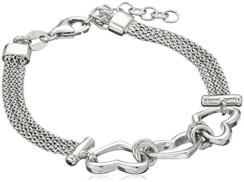 -. Title : Sterling Silver Italian Triple Heart 2- Strand Popcorn Bracelet, 7.5"