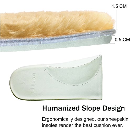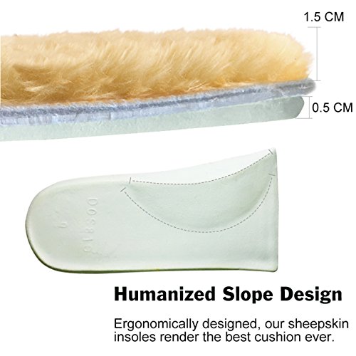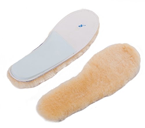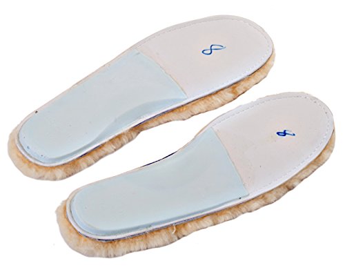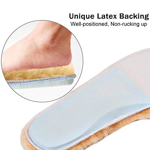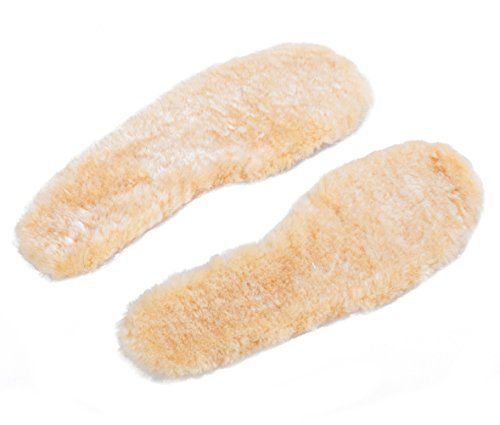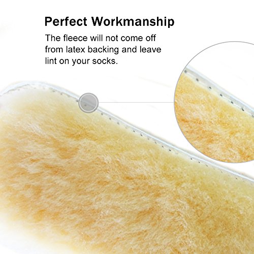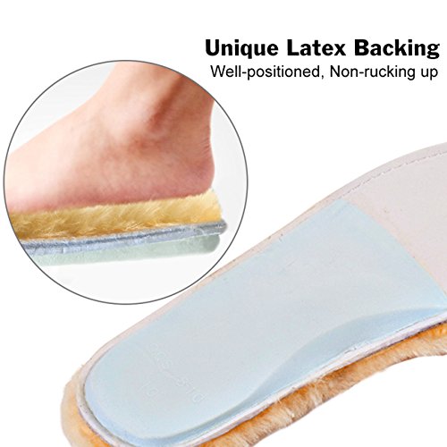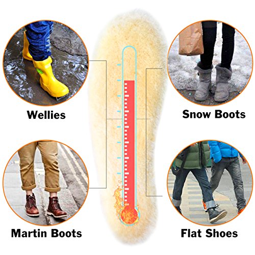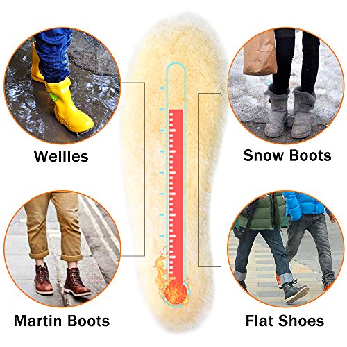 100% sheepskin insoles and rubber heel. Adjustable wool shoe pad/replaceable/insole enable you fit all shoes. Thick pad keeps your feet warm even you walk on snow.