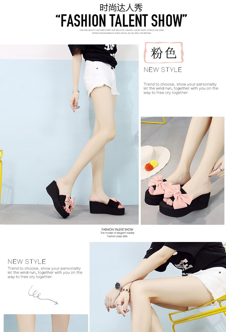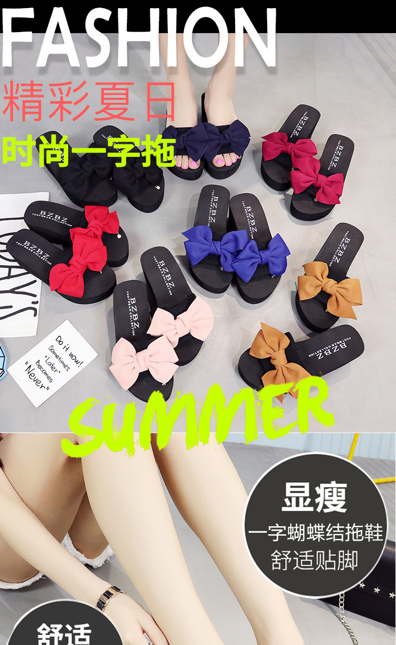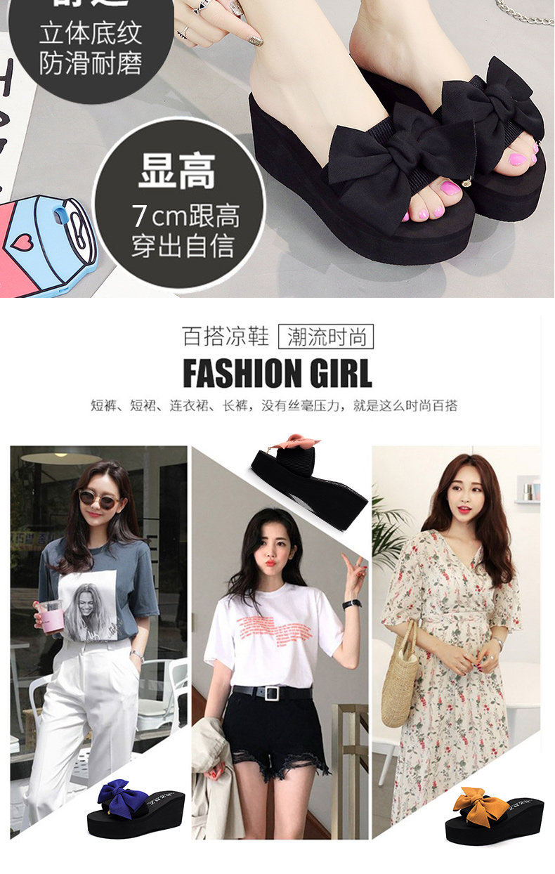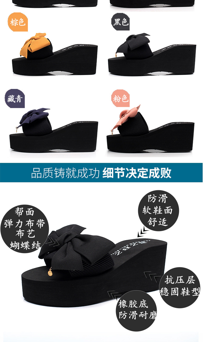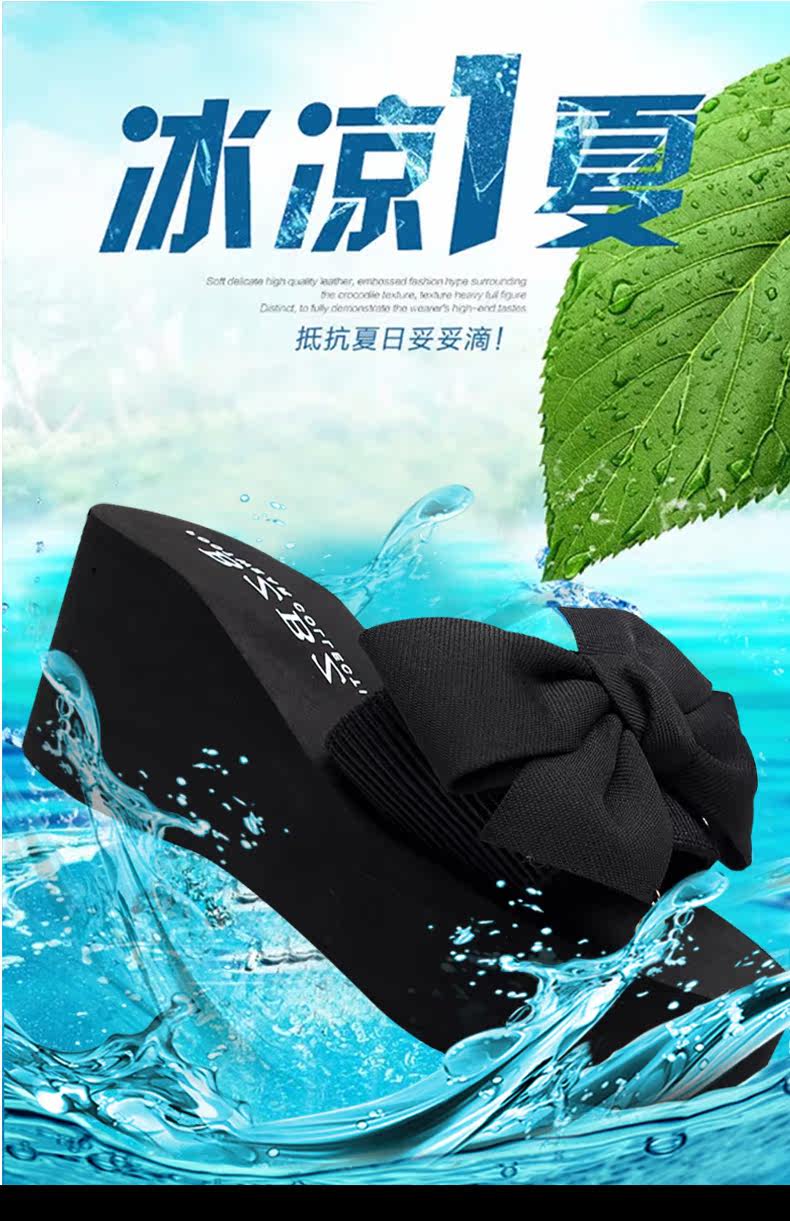 韩版手工拖鞋外穿坡跟凉拖鞋高跟一字拖鞋女夏时尚防滑厚底沙滩鞋