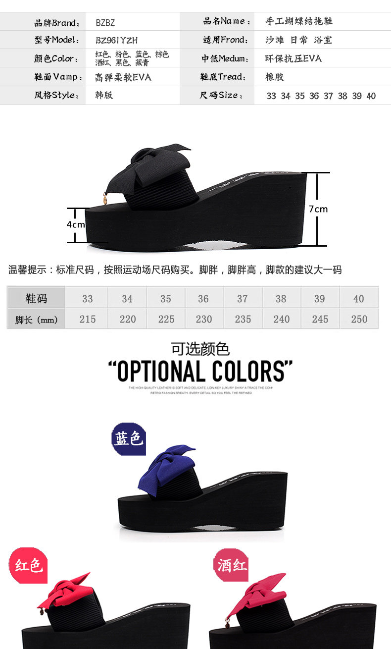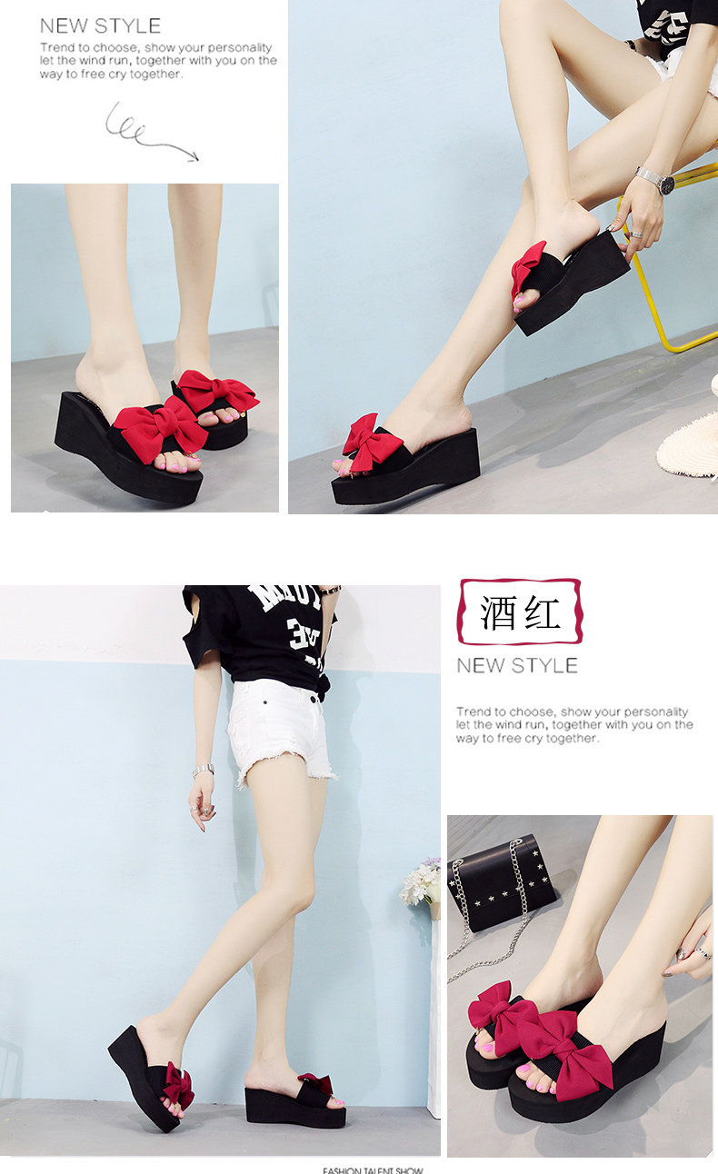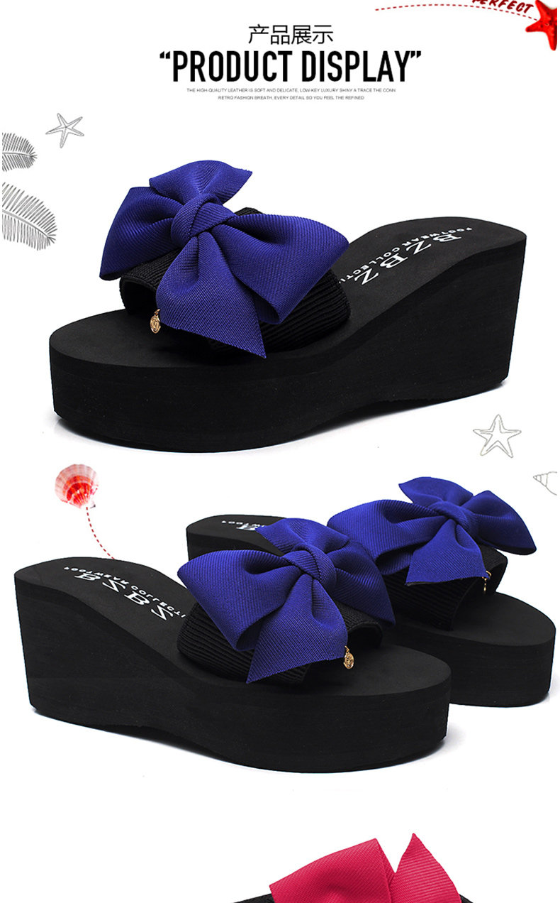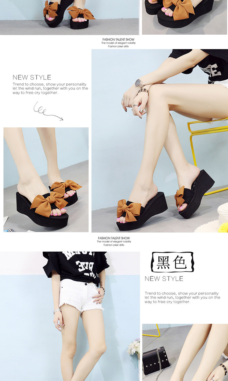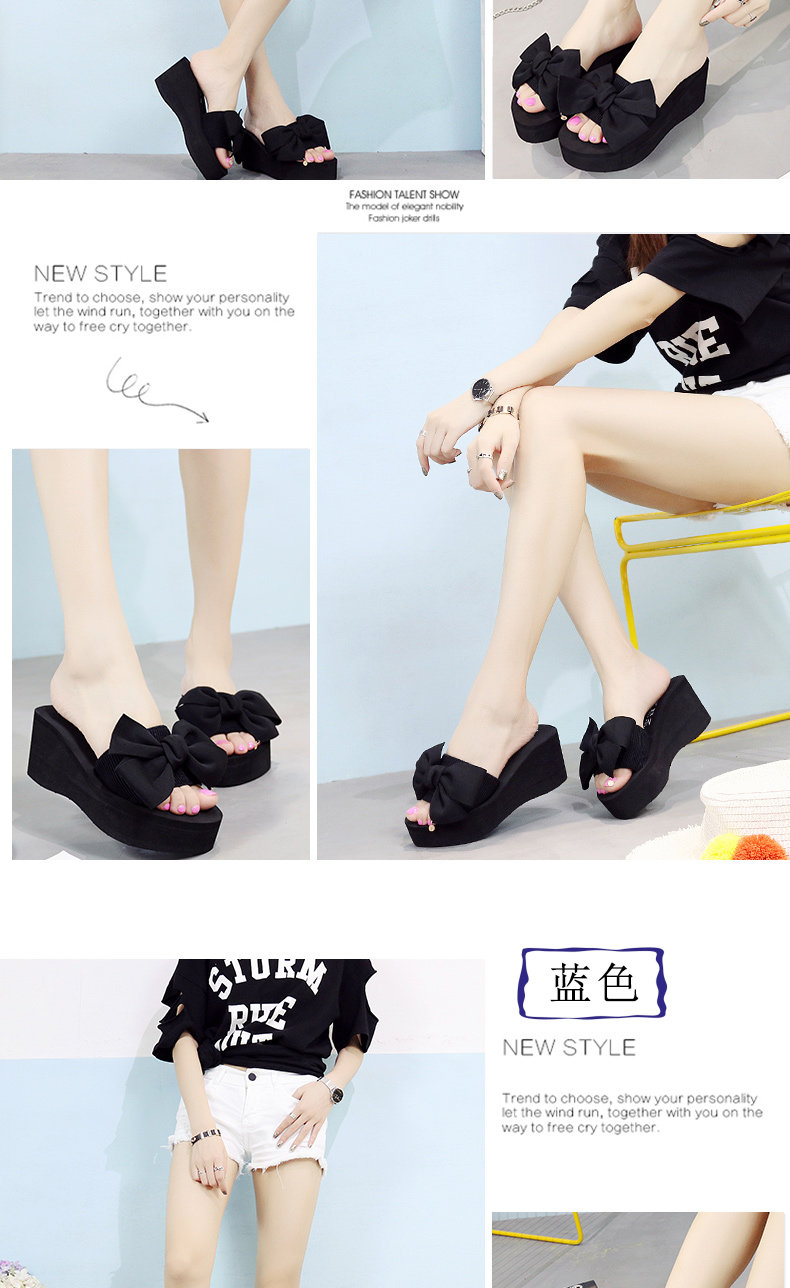 韩版手工拖鞋外穿坡跟凉拖鞋高跟一字拖鞋女夏时尚防滑厚底沙滩鞋