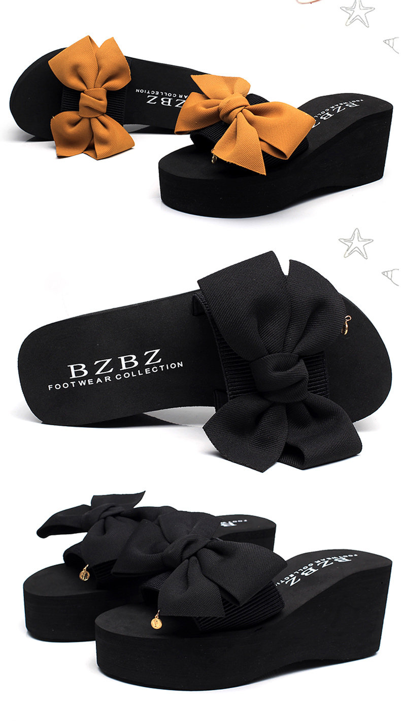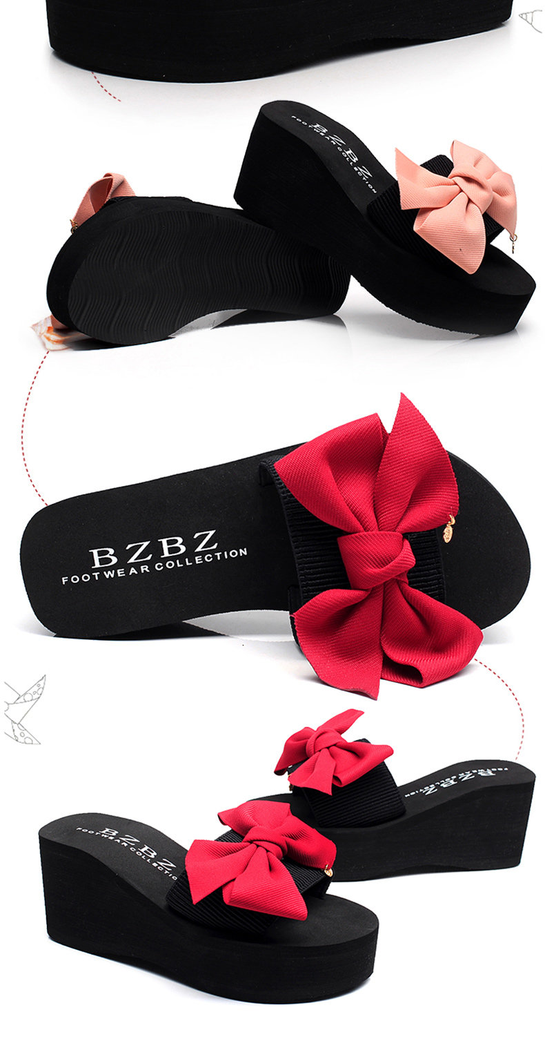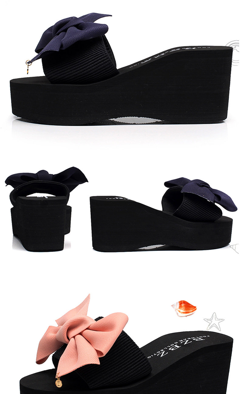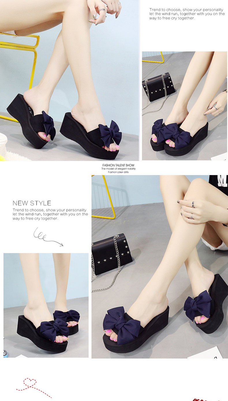韩版手工拖鞋外穿坡跟凉拖鞋高跟一字拖鞋女夏时尚防滑厚底沙滩鞋