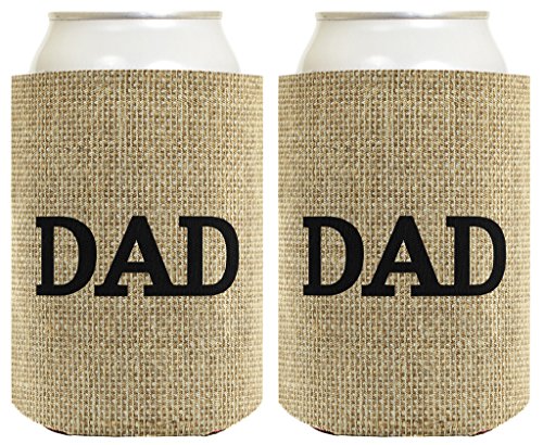 Father's Day Gift for Dad or Grandpa Burlap Pattern 2 Pack Can Coolie Drink Coolers Coolies Burlap