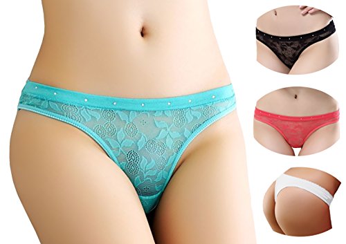 -. Feature : Sexy String Tanga Set in 4 Farben Schwarz, Weiß, Melone, Mint / Aussergewöhnliches Design mit Strass-Steinchen am Bund / Elastisches Material - Erotisch Transparent / Verführerisches Dessous aus Spitze / Größe: 34-36
