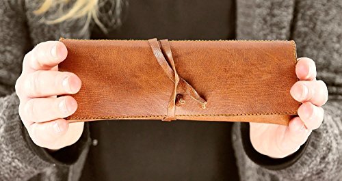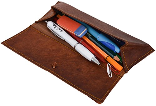Genuine Leather Stationery Pencil Pen Case Art Pouch Office Uni College Smart Everyday Vintage Unisex Brown