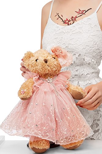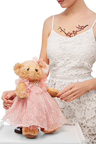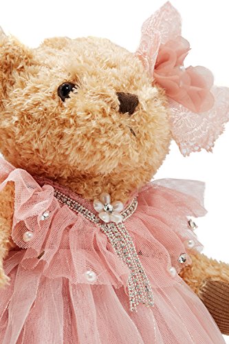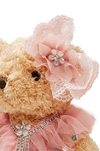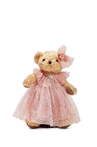 Bride Teddy Bear in Pink Dress Wedding Stuffed Animal Plush Toy 12" (light brown, cherry blossom pink)