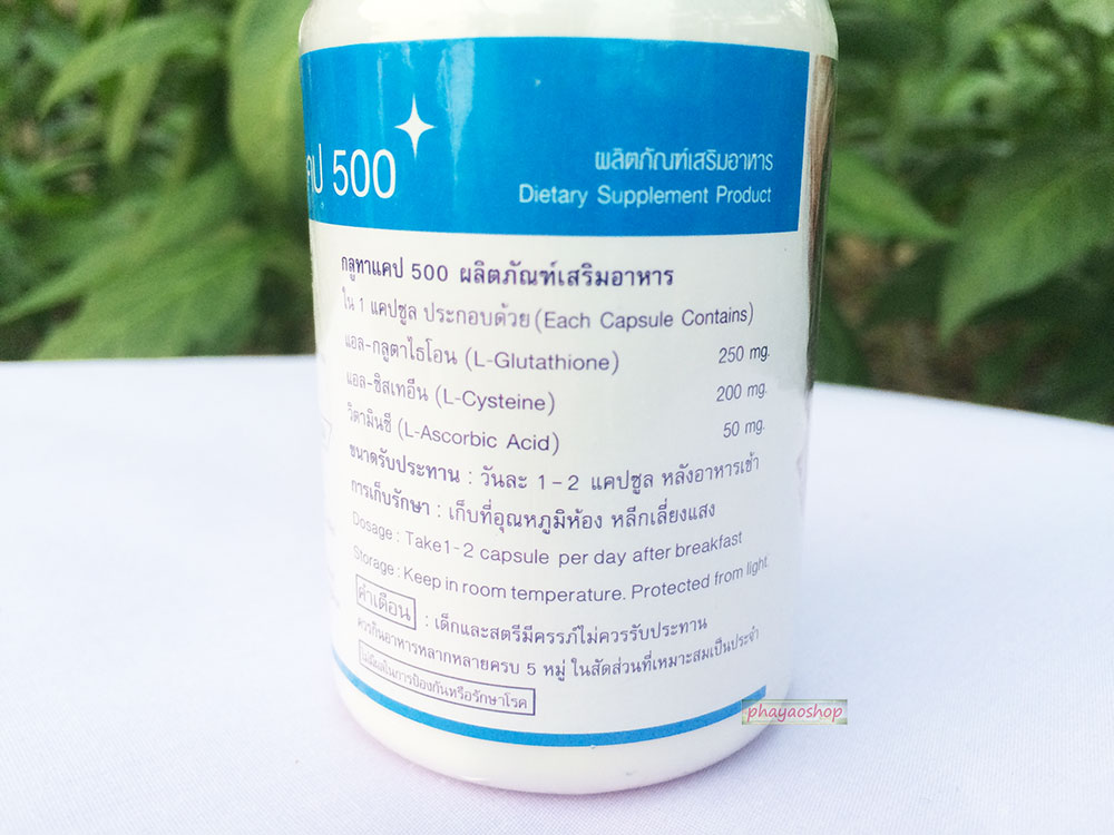 Contain L-Gluta 500 mg. See result in 14 days!!!! Take 1 Capsules before breakfast or take at night before bed. (2 Capsules daily)