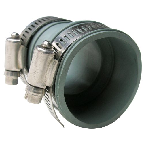 LASCO 25-6801 Flexible Rubber Gray Pipe Coupler with Clamps with 1 1/2-Inch to 1 1/2-Inch PVC for ABS Plastic or Galvanized Steel