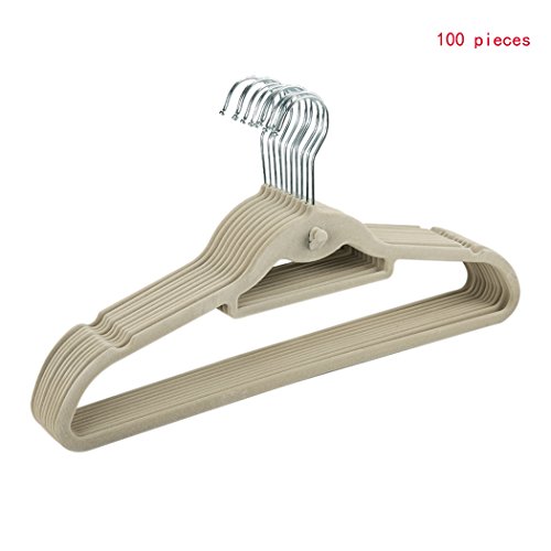 -. Feature : Strong, Non-slip velvet Padded with Notched Shoulders which is very elegant and comfortable for chemises and other smooth materials clothes. / Reinforced construction, hold various dresses, suits, and shirts, or even you can use it for scarves and ties / PERFECT FOR IRONED CLOTHES - These ultra soft velvet hangers are the best way to keep your ironed clothes in perfect condition, free of wrinkles and tugs. / U-shape grooved on the shoulder prevent garment from slipping, Cloth hanger Unique shape prevents creasing. Slim body hangers will maximize closet space and please do not hang the wet clothes. / MAKES A GREAT GIFT - The set makes a great gift! With this pack of 100 velvet hangers with chrome finish, you can replace all your regular hangers at once.