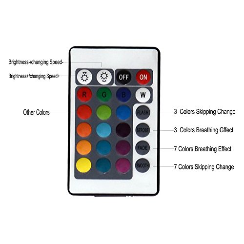 Multple colour selection with high-brightness LEDs, adjust the color, luminance, or cycle through multiple colors using the 24 key RF wireless remote controller.