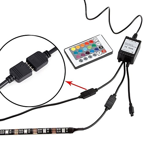 Include everything you need for quickly installation. 2pcs 20inchs RGB Color LED light strips, remote control, extension cable, power cable 12V DC, 4-pin D connector and controller.
