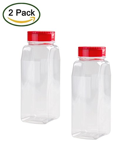 2 Pack - 32 OZ Clear Plastic Spice Bottles Jars Containers - Flap Cap, Pour and Sifter Shaker, Refillable. Perfect For Storing and Dispensing Herbs and Spices - BPA Free