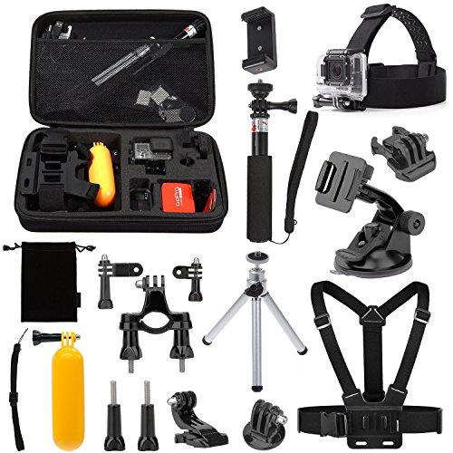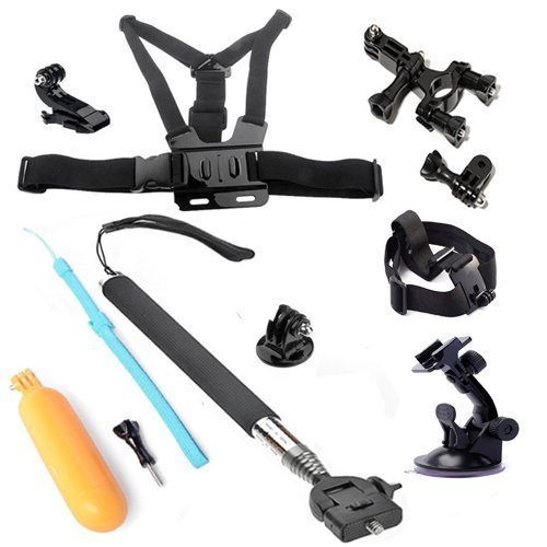 Handheld Telescopic Monopod: Adjustable ball head provides 180 degree angle to shoot. Used as selfie stick, take photos without asking other people for help, enable self-service photographs. Tripod Adapter & Thumb screw fix your GoPro Hero Camera and keep it secure. -Head Strap: Can be worn over a helmet or directly on your head to capture footage from a headlamp-like perspective. Wear your GoPro on your head or attach it to a backwards baseball cap.