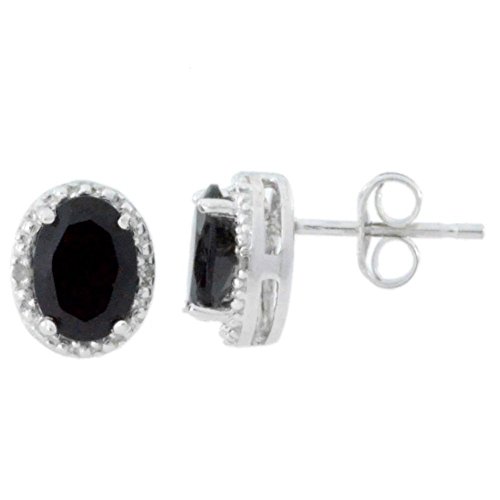 -. Title : 2 Ct Genuine Black Onyx & Diamond Oval Stud Earrings 14Kt White Gold & Sterling Silver