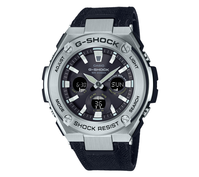 S330C는 케이스가 기존의 G-STEEL 보다 작아 얇은 손목에도 잘 어울립니다. 또한, 매끄러운 질감의 메탈소재 케이스와 패브릭 소재의 밴드가 결합되어 클래식하며 세련된 두 가지 느낌을 동시에 가집니다.