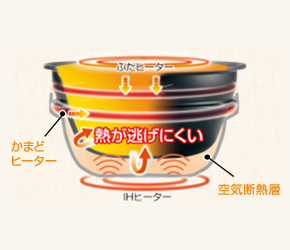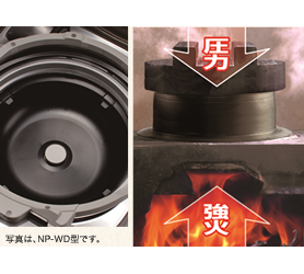 羽釜炊きの大火力を維持でき、しかも保温ごはんのうるおいを保つ「うるおい二重内ぶた」