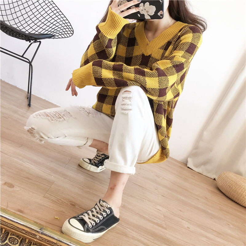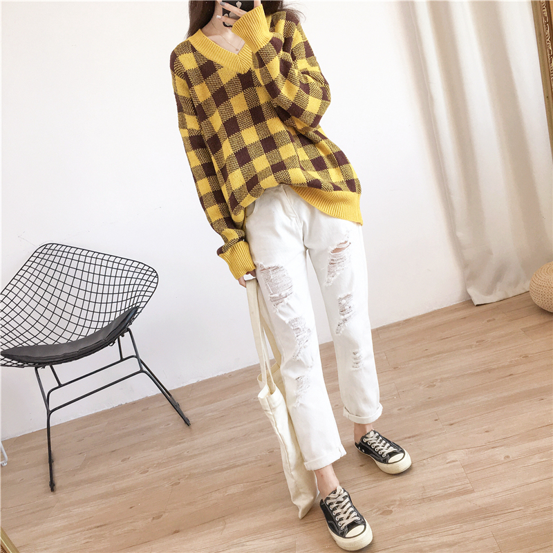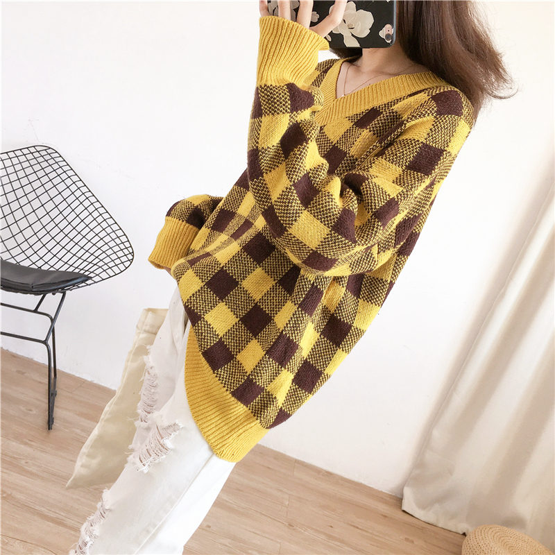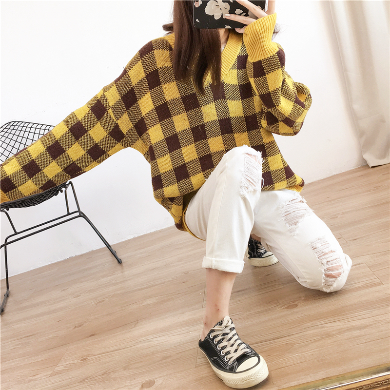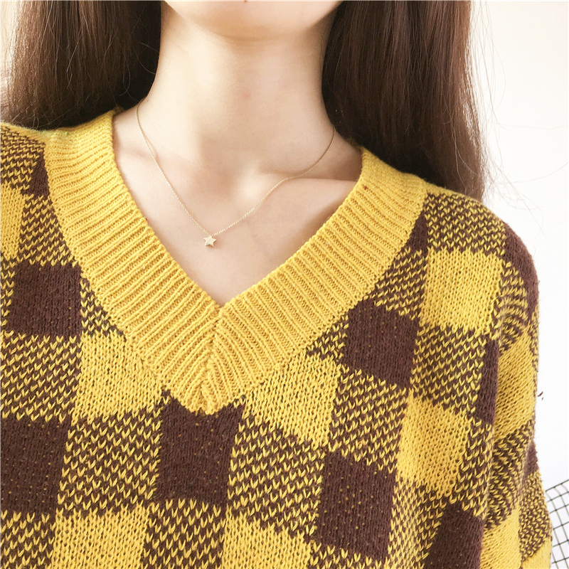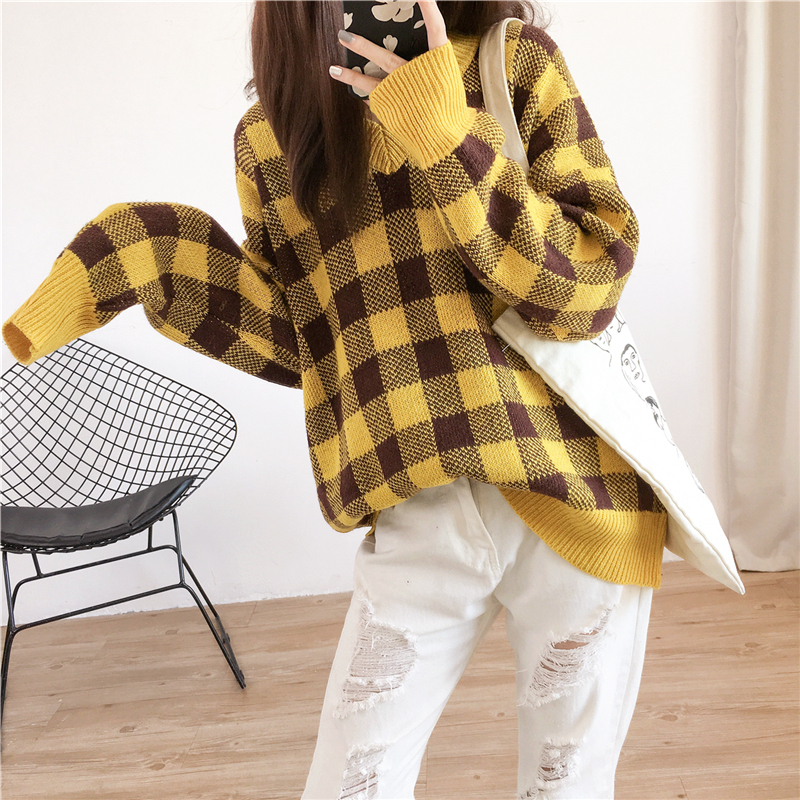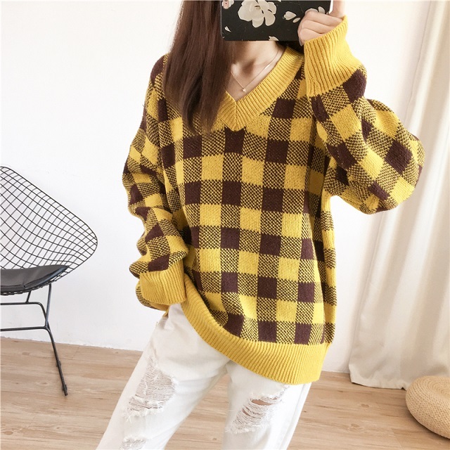 大きめチェック柄がデイリーカジュアルに映えるニットトップスです☆