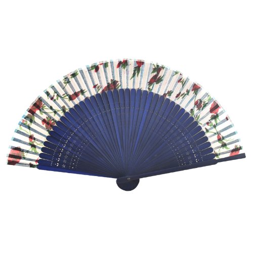 Bamboo Folding Fan - Red Rose in White - Blue