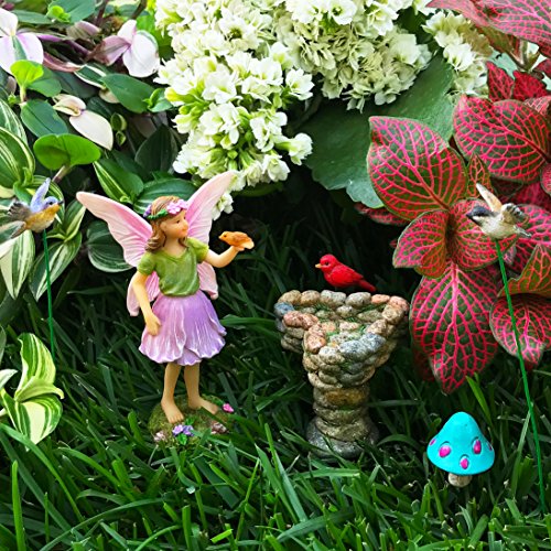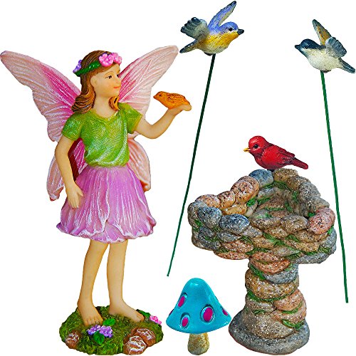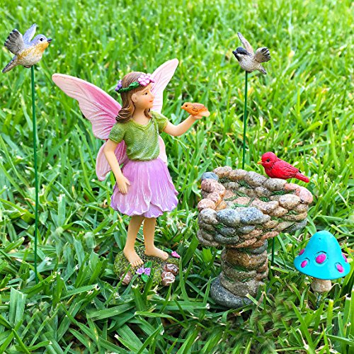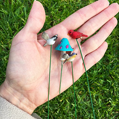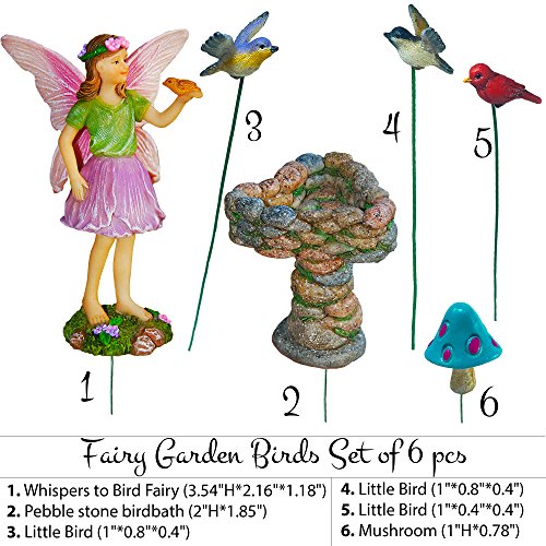 Fairy Garden - Miniature Accessories - Hand Painted Figurines Kit of 6 pcs - Birds Set for Outdoor or House Decor - By Mood Lab