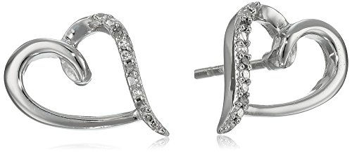 -. Title : 10k White Gold Diamond-Accent Heart Earringss (I-J Color, I2-I3 Clarity)