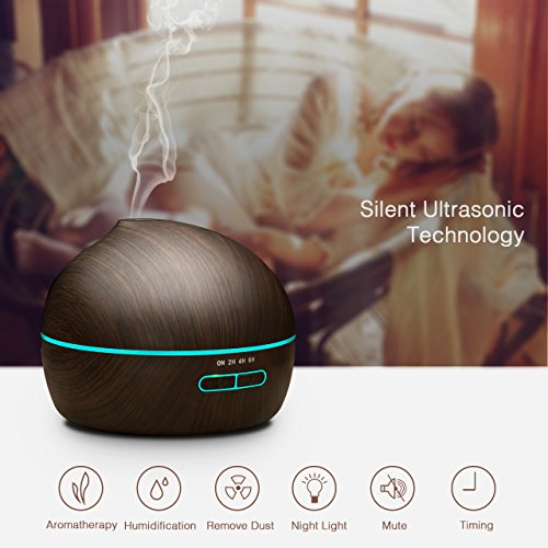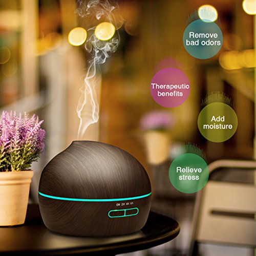 VicTsing 300ml Essential Oil Diffuser Ultrasonic Aroma Wood Grain Humidifier with 7 Color LED Lights for Office Home Room Yoga Spa