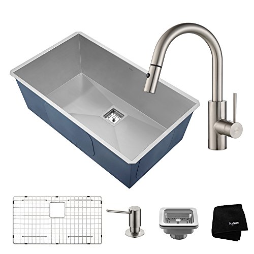 Includes: Single Bowl Kitchen Sink Model KHU32, Single Handle Pull Down Kitchen Faucet #KPF-2620, Sink Accessories (Matching Dish Grid KBG-H32, Sink Strainer ST-3, 100% Cotton Towel)