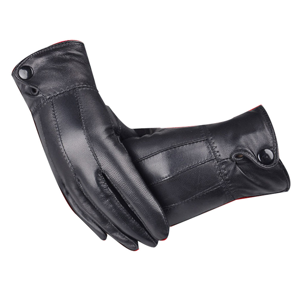 Women Girl Luxurious PU Leather Winter Super Warm Gloves Cashmere Bow