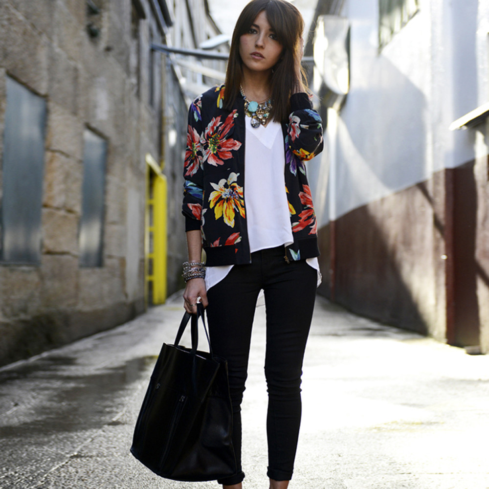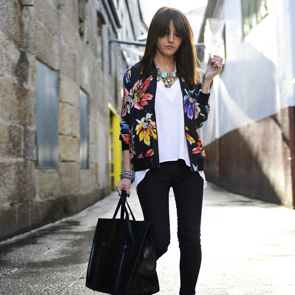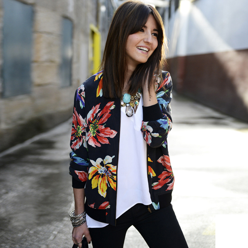 Women Long Sleeve Printed Zipper Blazer Suit Jacket Coat Outwear