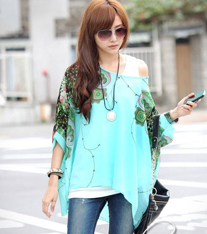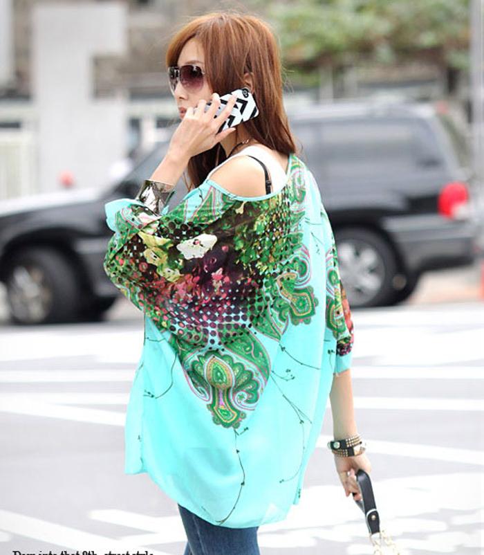 1PC Bohemia Women Floral Batwing Chiffon Loose T-Shirt Blouse Top