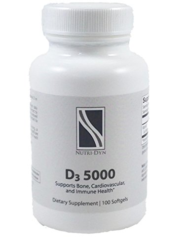 -. Feature : Nutri-Dyn's D3 5000 contains 5000 IU of vitamin D3 in a sofgel / Supports Bone, Cardiovascular, and Immune Health